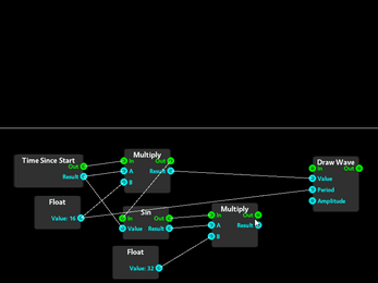 I always enjoyed playing with visual graph editors like Substance Designer and World Machine so I decided to make my own! This first prototype renders a wave across the screen as a simple test case. Later I'd like to turn this into something more useful but for now it's fun to see the Nodes talking to each other as intended. There are a few bugs I haven't fixed yet but I wanted to show my progress anyway. If you ever get stuck just refresh your web browser.